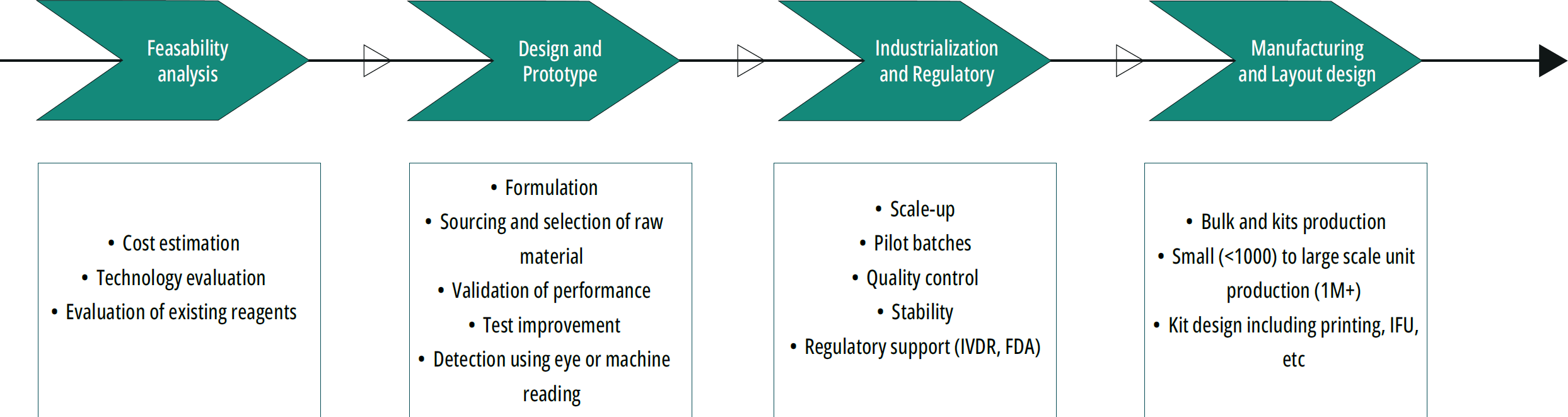 A young innovative company (YIC) developed a promising lateral-flow prototype using benchtop equipment but lacked industrial manufacturing capabilities.