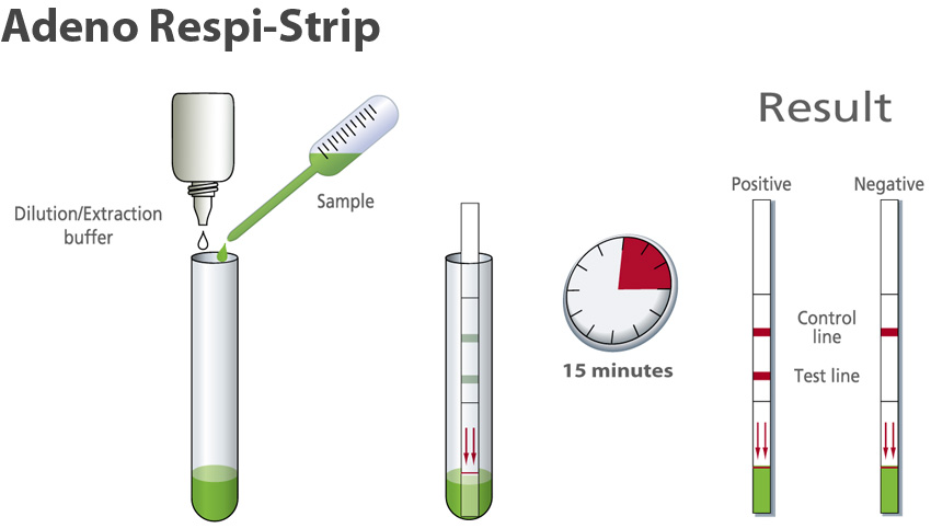 Respiratory Adenovirus | Adeno Respi-Strip | Lateral flow | 25 tests, buffer | C-1009 |